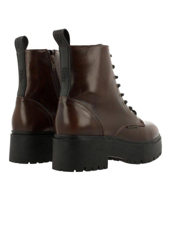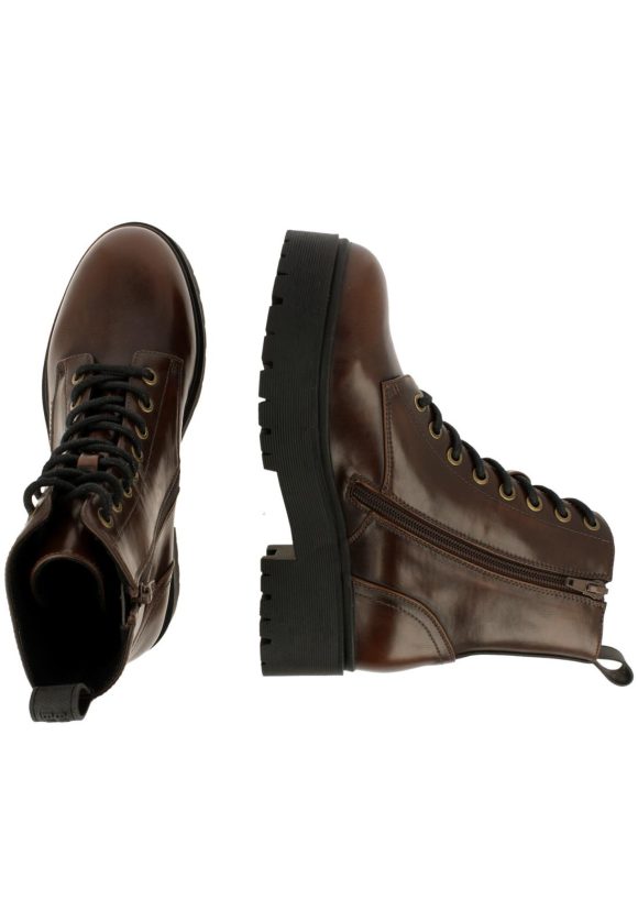 These ankle boots give every outfit a cool touch. They are easy to put on and take off thanks to the zipper on the inside of the boots. The boots are executed in brown synthethic leather.