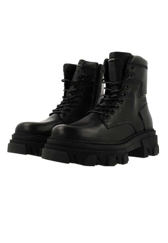 Get ready with these sturdy lace-up boots. The zip on the side makes the boot easy to put on and take off. The boot is made of black leather and the rough rubber sole provides extra grip. In addition, they have a comfortable footbed. The boots are designed in the Netherlands and made in Portugal.
