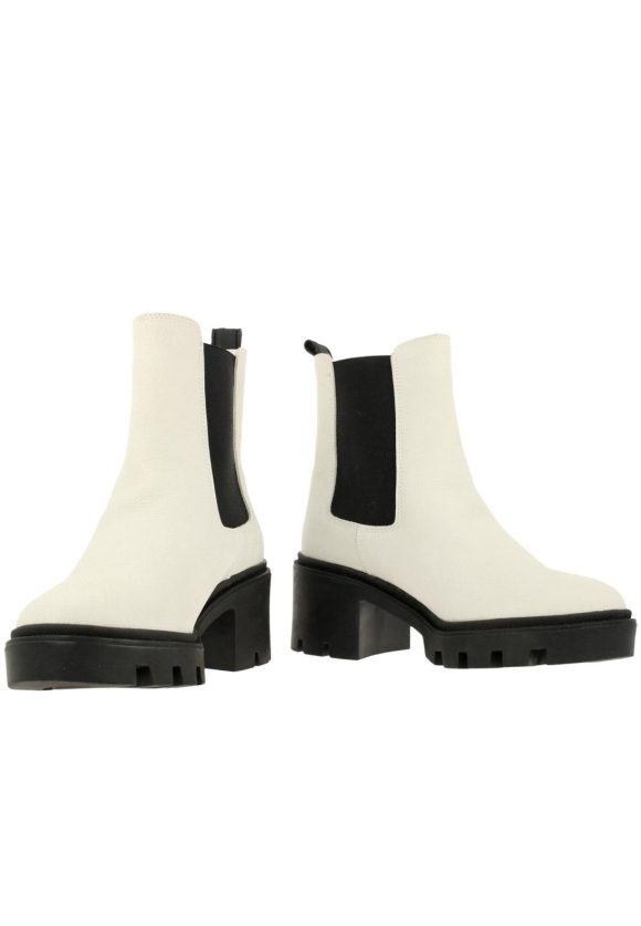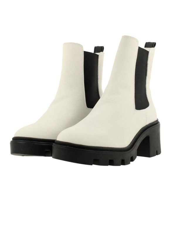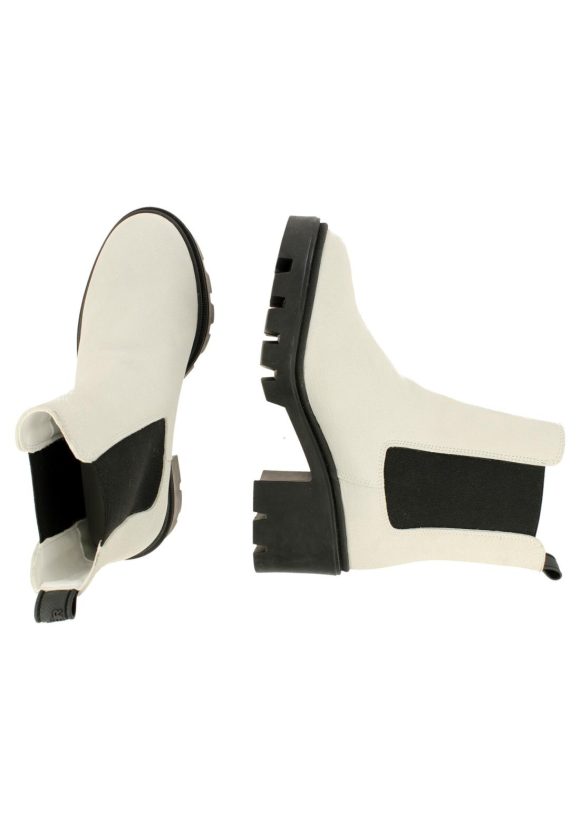 These sturdy chelsea boots, will give your outfit a cool touch. The elastic sides make it easy for you to put the boot on and take off. The boot is made of white leather and the rough, rubber sole provides extra grip. Besides that, they have a comfortable footbed. The boots are designed in the Netherlands and made in Portugal.