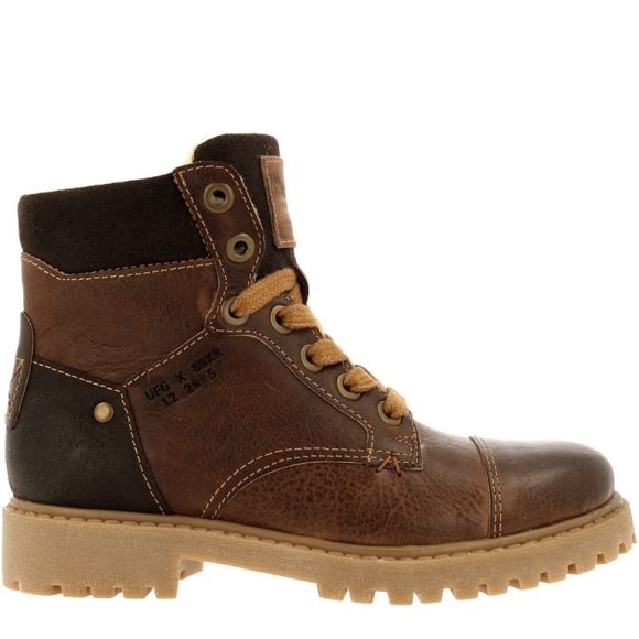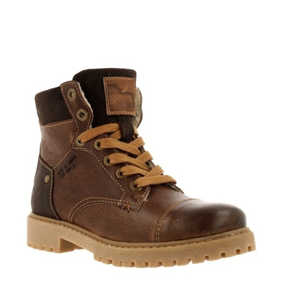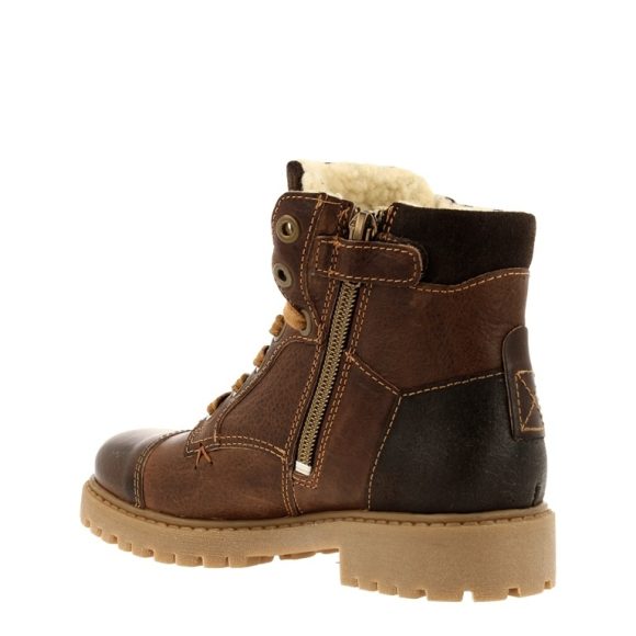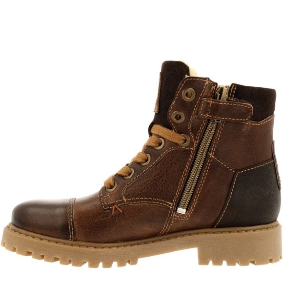 This tough boys lace boot is made from waxed leather. The zipper on the side allows you to pull this boat on and off easily. The faux fur lining ensures warm feet and optimal wearing comfort. The rubber sole provides extra grip. These boots are designed in the Netherlands and made in Portugal.