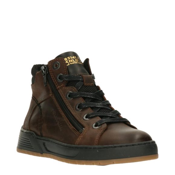Cool sneakers are a must have for all boys. These high sneakers are made of a combination of leather and textile. They are easy to wear because of the zipper on the side. The shoe has a solid sole that has good grip and a removable footbed. These sneakers are designed in The Netherlands and produced in Portugal.