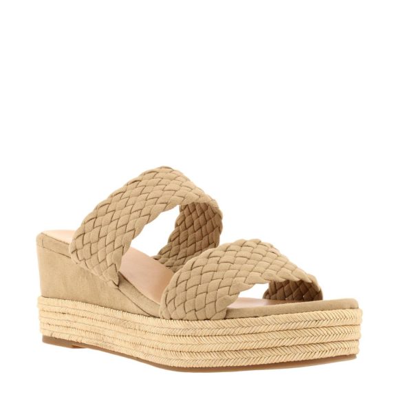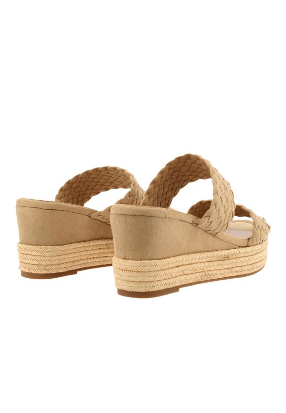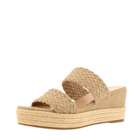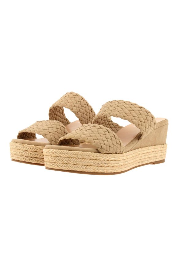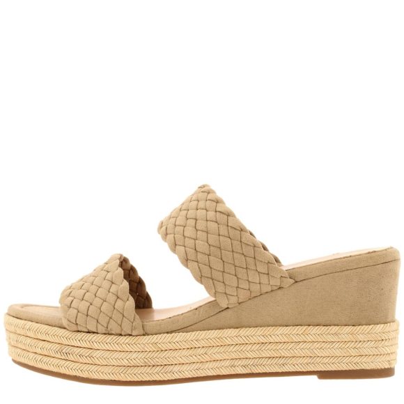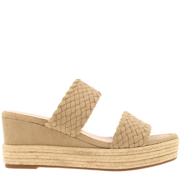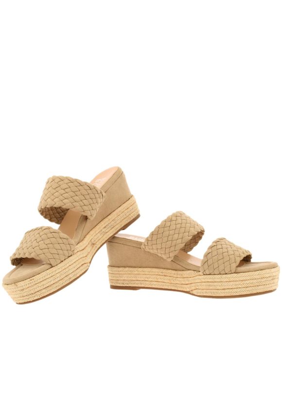 These sandals will have you ready for the new fashion season. The shoe is made of textile and has a fine wedge heel. In addition, they have a very comfortable footbed. The shoes are designed in the Netherlands and made in Portugal.