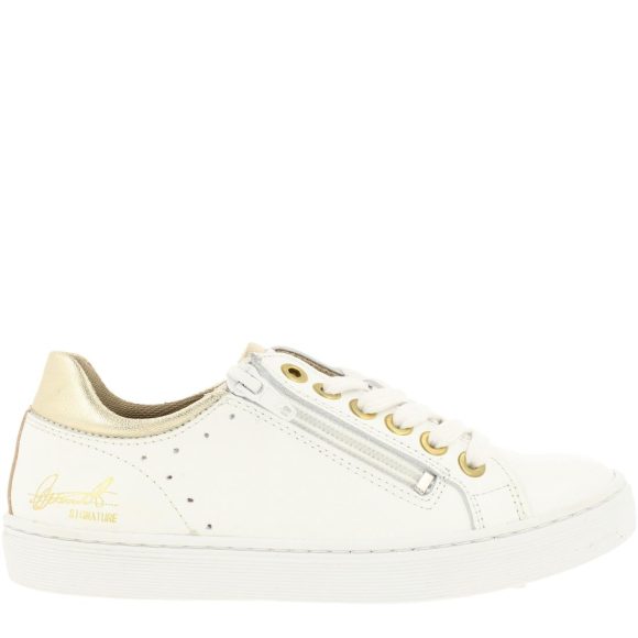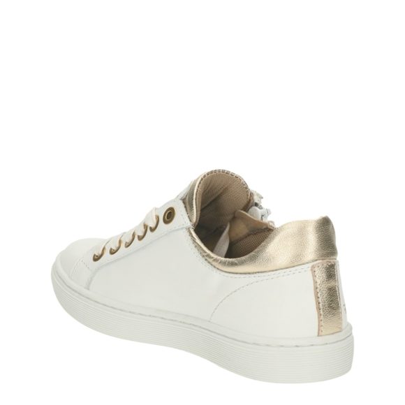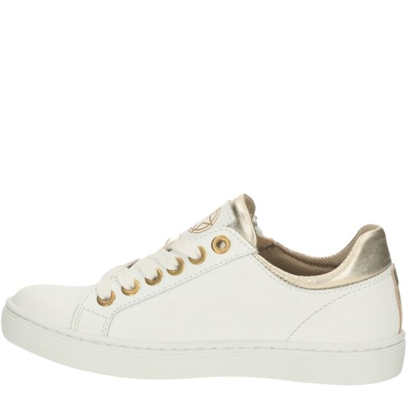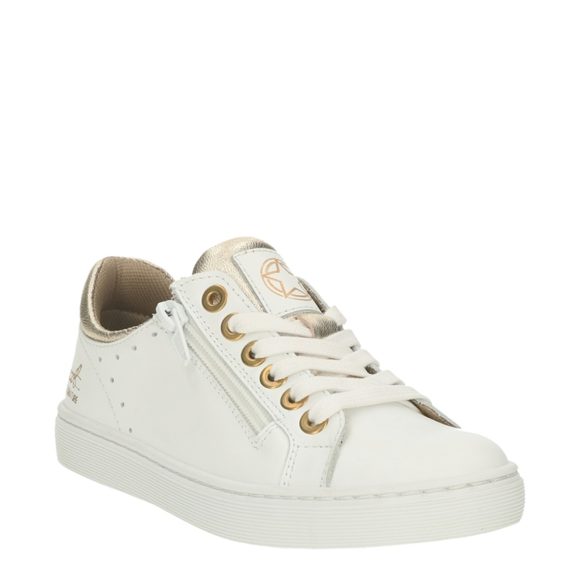 Wear these sneakers under pants or under a dress to make it just that little bit tougher. Go for these white sneakers with golden details that are made from a combination of leather and textile. The shoe has a sturdy sole with good grip and a removable footbed. This model is designed in the Netherlands and made in Portugal.
