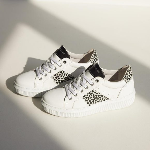 Wear these sneakers under pants or under a dress to make it just that little bit tougher. Go for these white sneakers with an animal print, which are made from a combination of leather and textile. The shoe has a sturdy sole with good grip and a removable footbed. This model is designed in the Netherlands and made in Portugal.