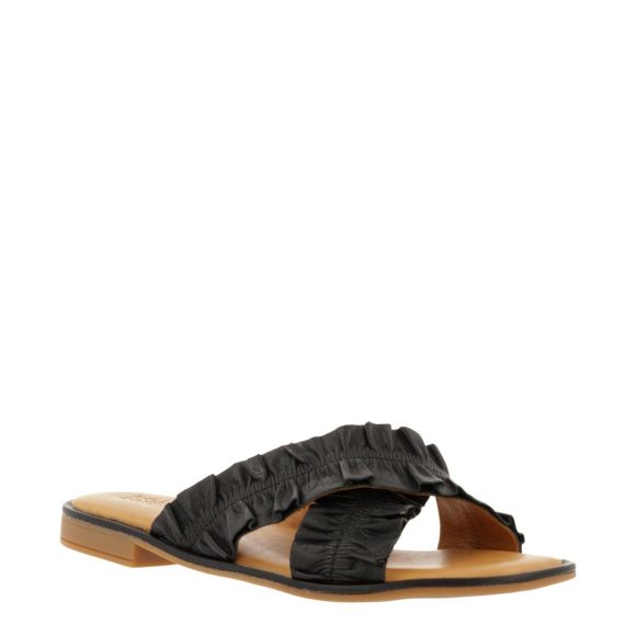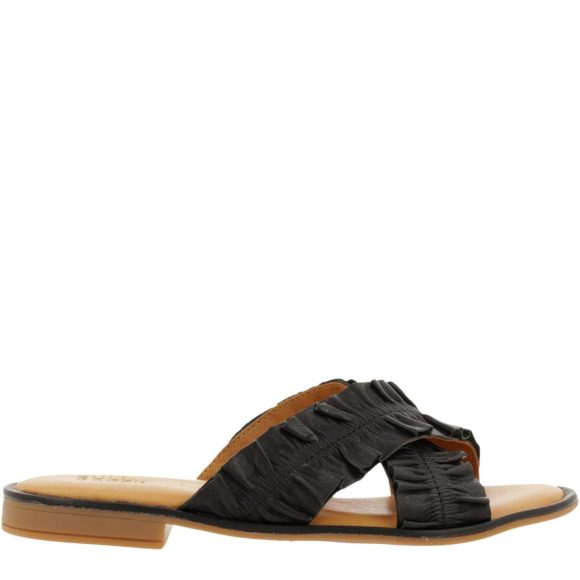 The ideal summer shoe is this leather sandal. Thanks to the soft footbed, this slipper is pleasant to wear. Made of 100% suede.
