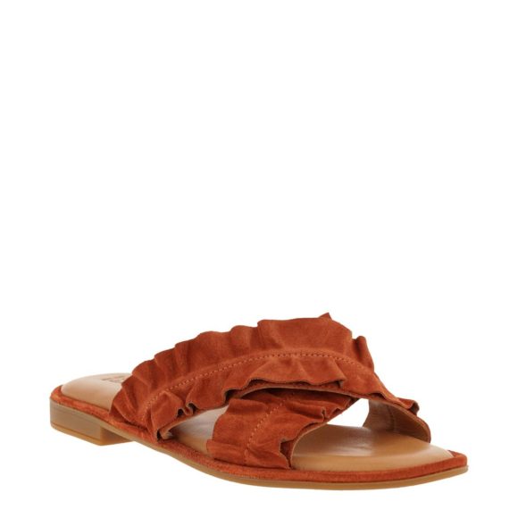 The ideal summer shoe is this leather sandal. Thanks to the soft footbed, this slipper is pleasant to wear. Made of 100% suede.