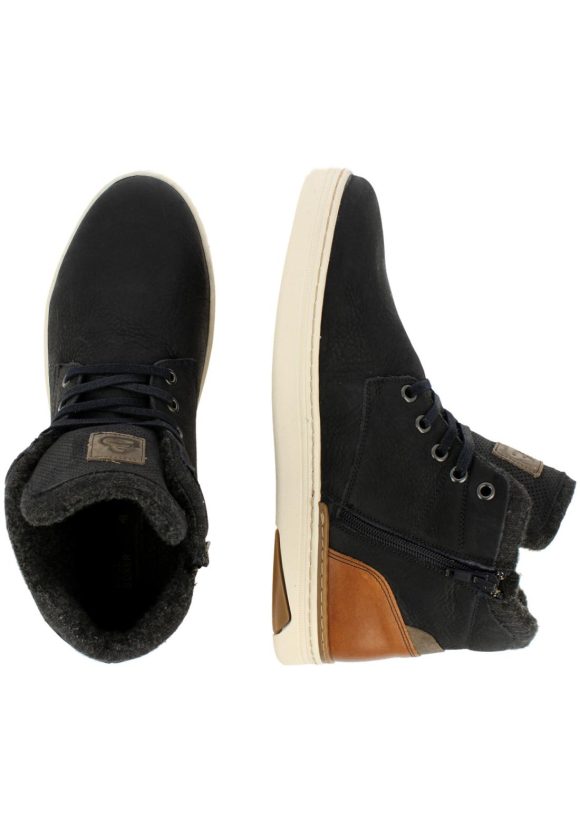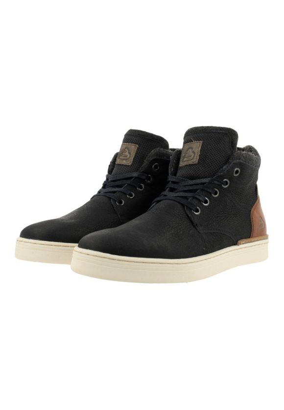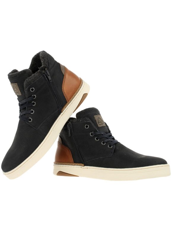 Create a sporty look with these high sneakers that are solid yet flexible. This sneaker is made of blue leather and comes with a comfortable footbed. The shoes are designed in The Netherlands and produced in Portugal.